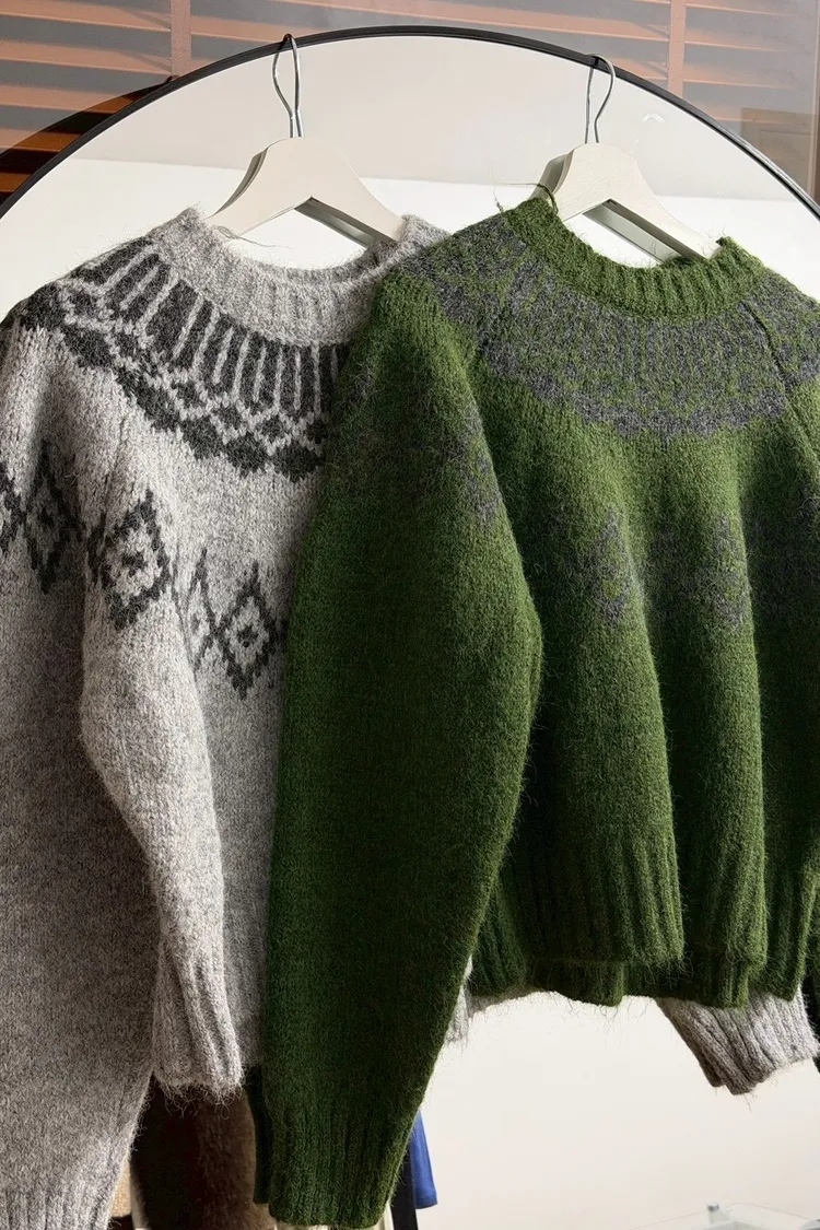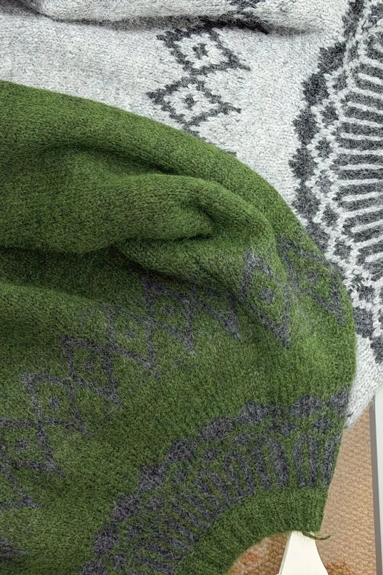 中短版羊毛圖騰毛衣